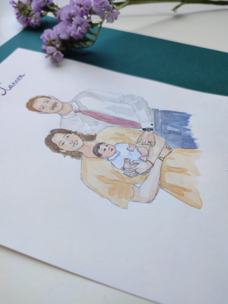 Pour un anniversaire, un baptême, une annonce, un mariage, un diplôme, ou simplement pour faire plaisir, le portrait à l’aquarelle est un moyen unique de réveiller de beaux souvenirs et de réchauffer le coeur de celui ou celle qui le recevra !
